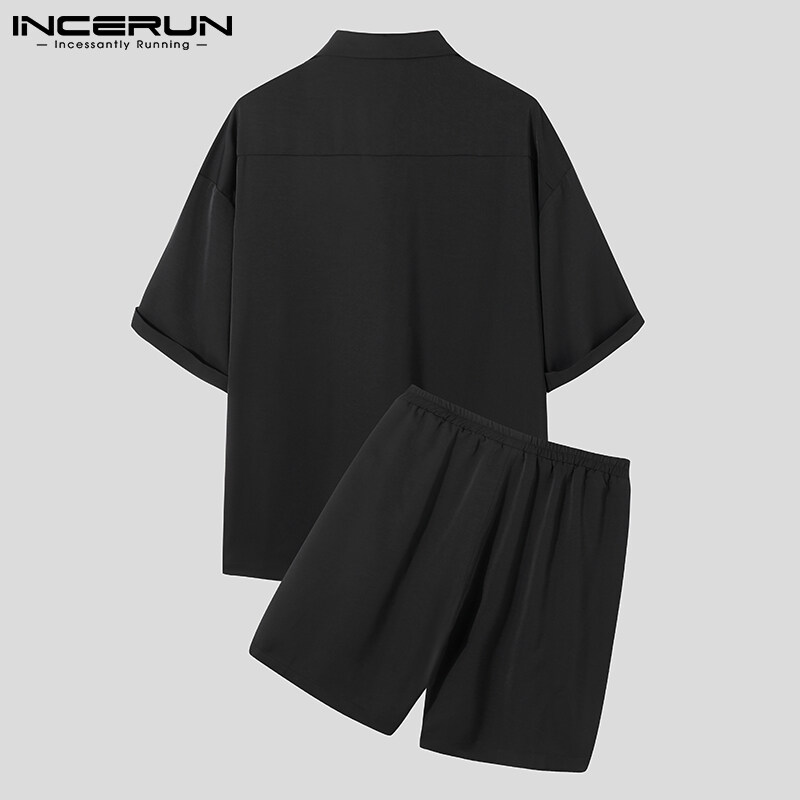 RisingHope Korea INCERUN 2PCS Mens Short Sleeve T Shirts Short Sleerwear Sets Sports Tracksuit Lounge Suit